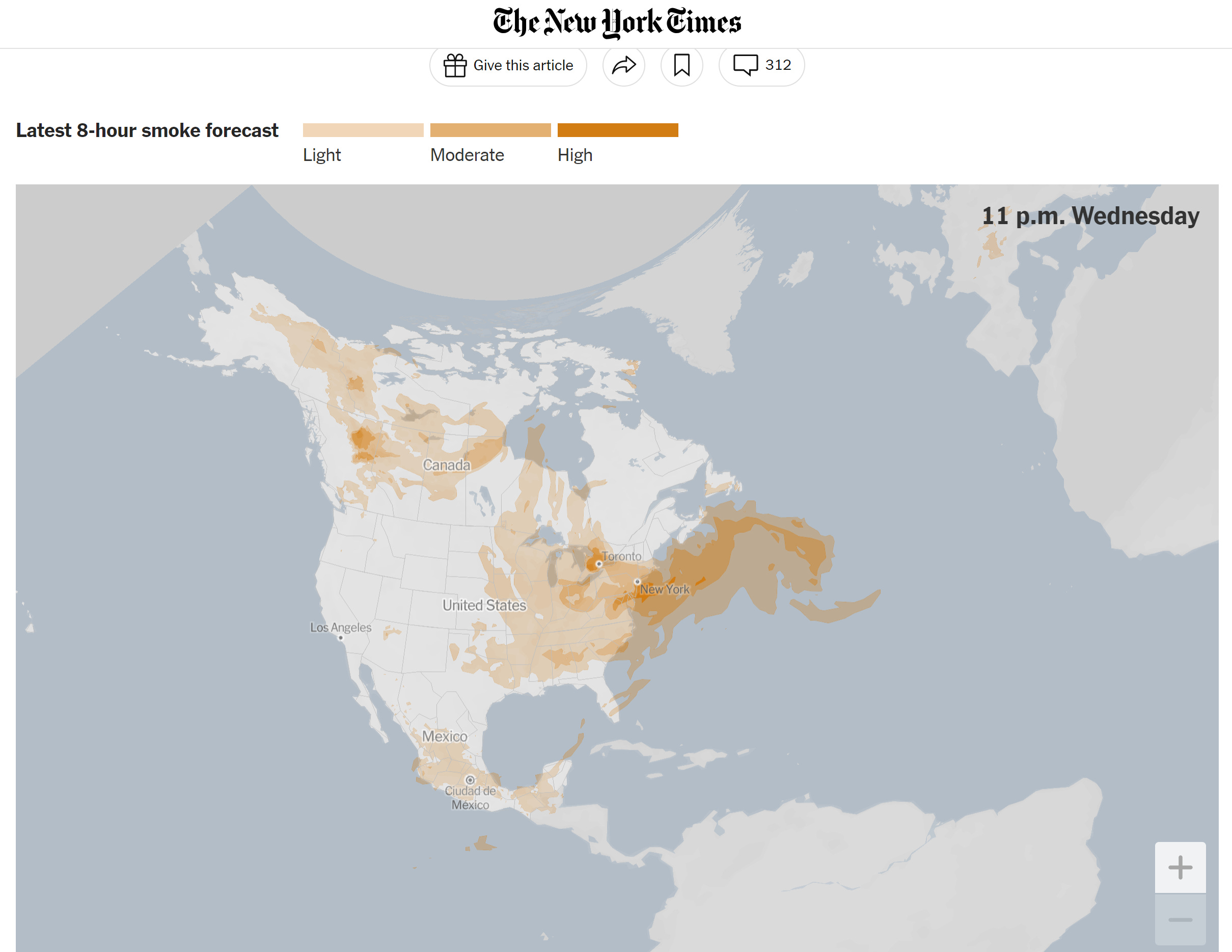 At present, the worst smoke is on the East Coast, but the cornbelt is also experiencing smoky air.