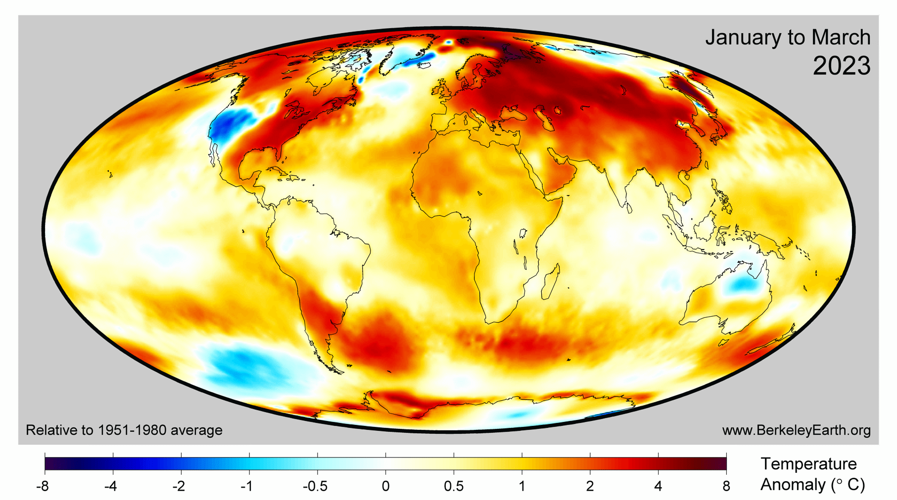 Like much of the world, Quebec was significantly warmer than usual in the first quarter of this year. (California is one of the few places on the globe that was cooler than usual during that period.)