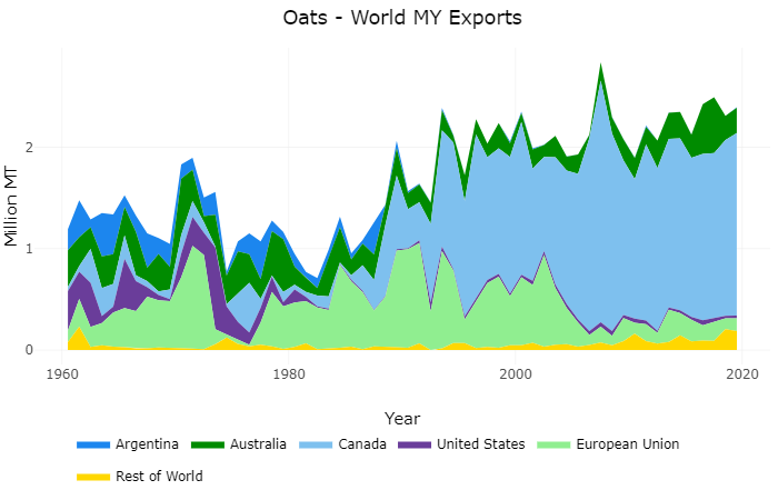 To view or download data on international oat production and trade, go to our newly improved World Trends for Major US Crops data app.