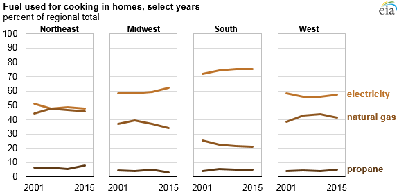 More American homes actually have electric cooktops than natural gas. However, most of these are electric coil rather than induction technology. Less than 1% of American homes have induction stovetops.