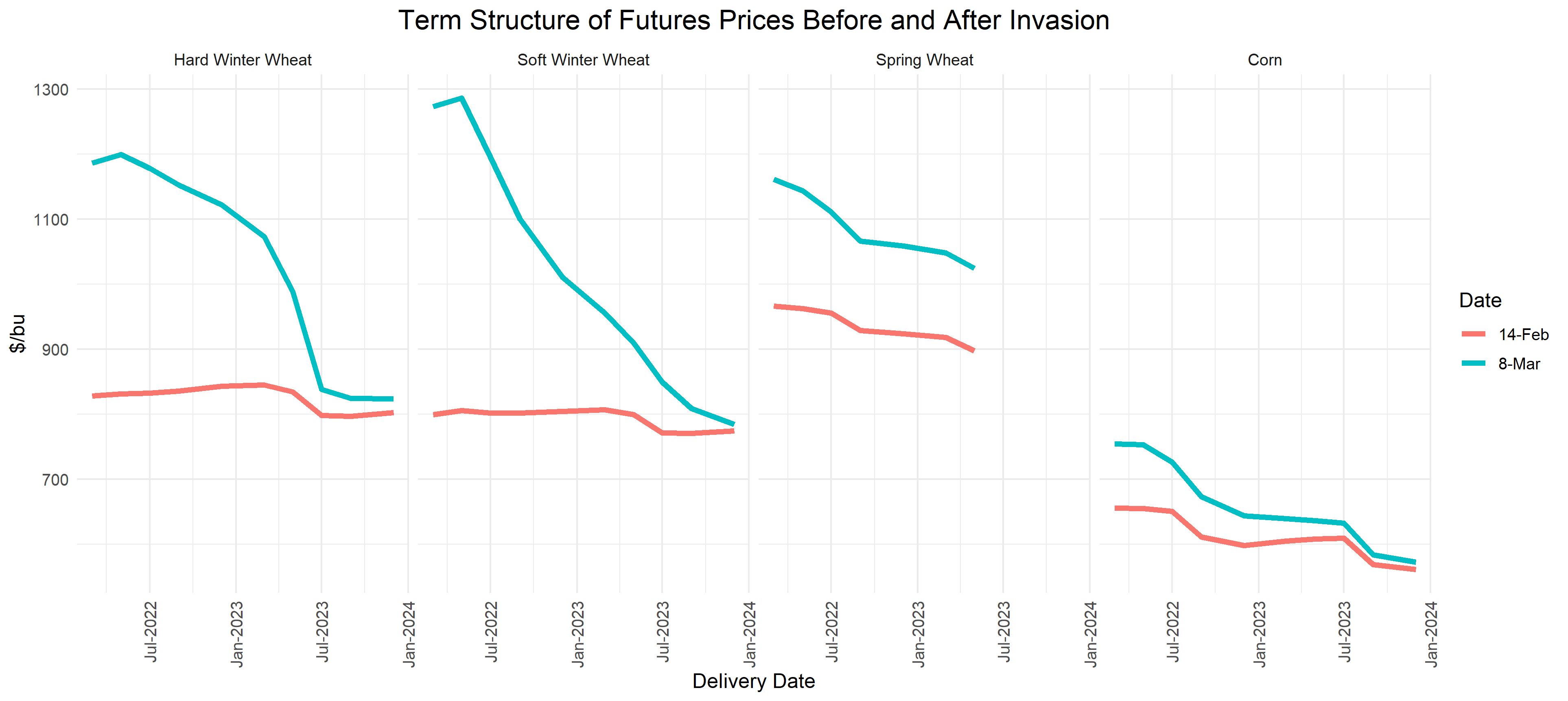 Traders expect this shock to last only a year. Winter wheat futures prices for delivery after July 2023 barely increased after the invasion. The same is true for corn. The spring wheat market was already tight because of last year's drought and traders expect it to remain tight beyond 2023.